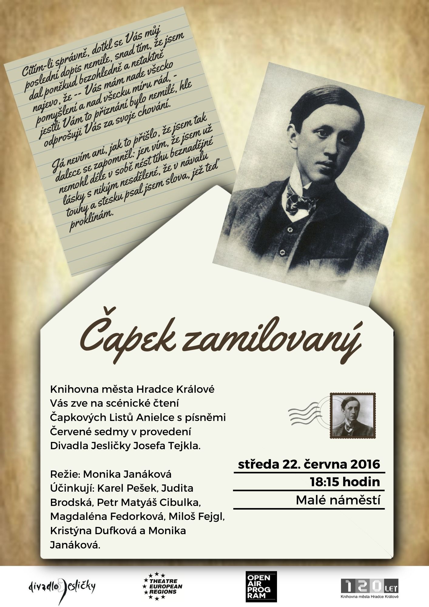 V roce 2016 se konala dvě scénické čtení, letáčky posílám v příloze. Nejprve to bylo venkovní čtení v rámci divadelního festivalu Divadlo evropských regionů, poté stejná akce v knihovně.