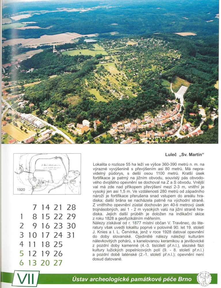 k Vašemu dotazu ohledně hradiska v Lulči posílám naskenované (viz použité zdroje) z několika encyklopedií. Osídlení na hradišti v poloze Valy (Svatý Martin) se objevuje už v neolitu, později následovaly další osídlení (lid jordanovské kultury a nálevkovitých pohárů(4. tisíciletí př. n. l.). Z doby bronzové(3000 př. n. l. – 1200 př. n. l.) odtud údajmně pocházejí nálezy kultury únětické a středodunajských poplenicových polí mladší a pozdní doby bronzové.